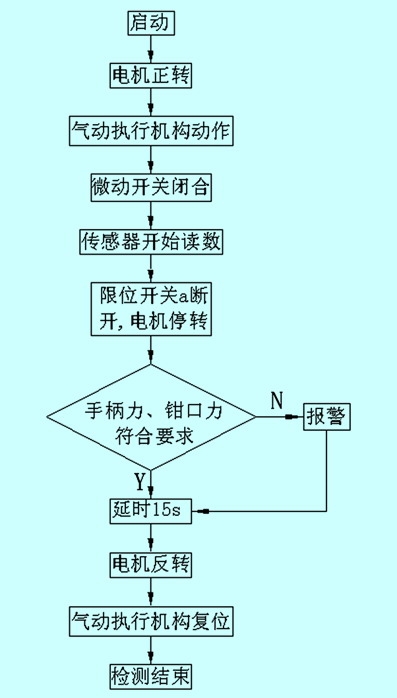 檢測(cè)臺(tái)體主要由檢測(cè)臺(tái)架、夾具、手柄力及鉗口力傳感器、手柄位移傳感器、極限開(kāi)關(guān)、電機(jī)、氣缸等組成[3],是檢測(cè)系統(tǒng)的基礎(chǔ)。